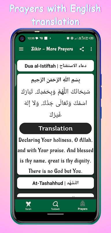 • अंग्रेजी अनुवाद के साथ 15 छोटे सूरह और 20 से अधिक दुआएँ।