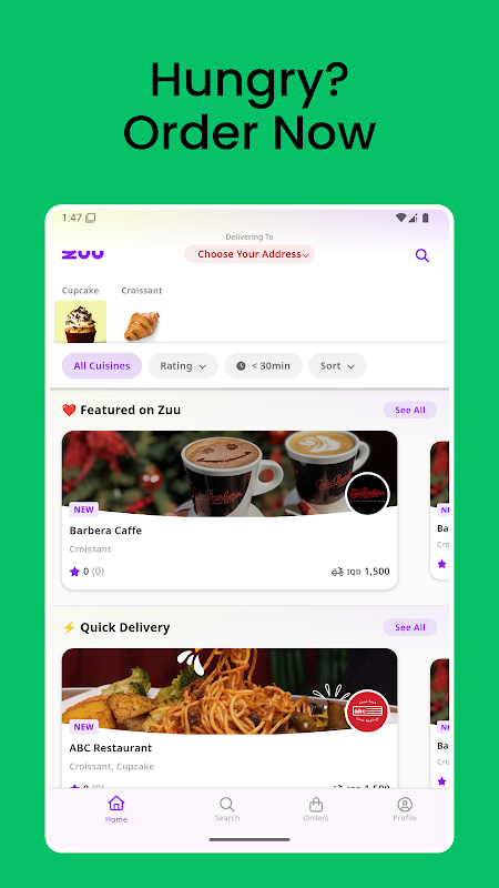 Zuu डिलीवरी, Zuuper के साथ अपना पसंदीदा भोजन तेजी से और आसानी से ऑर्डर करें!