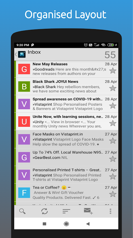 The app is a free universal email app, beautifully designed, easy to use, feature-packed smart app.