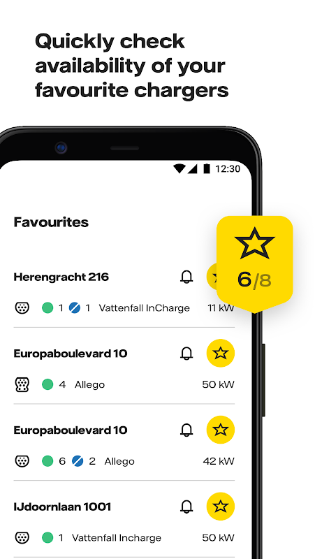 You have the option of monitoring a charging point in the app. When you do this you will be notified when the charging point is released or is occupied again. This way you know immediately when your favorite charging point is available and ready for you to charge your vehicle. It also prevents that you arrive at your destination and that the charging point is unexpectedly occupied!