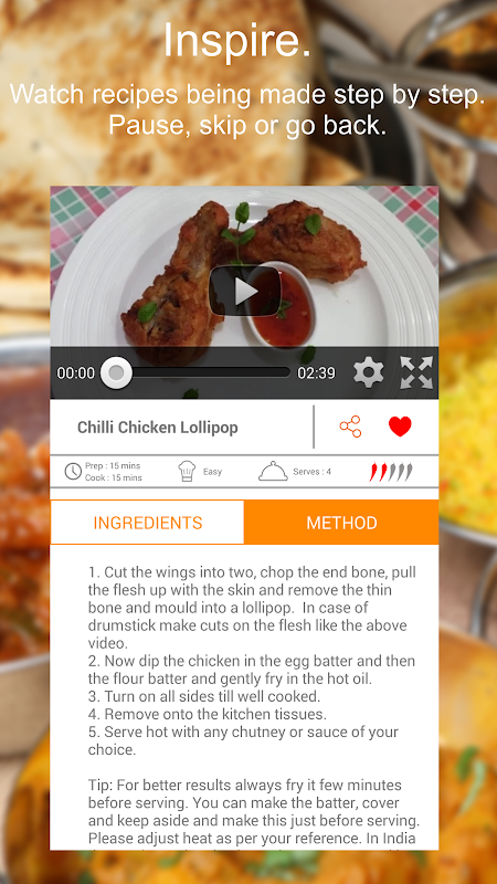 Recipes for authentic Indian food and curry dishes which are made using fresh ingredients and spices. Watch Indian curries being made step-by-step with videos for every recipe. Pause, skip, and go back whenever you want as you cook. The Recipe Spinner will help you decide what dish you should cook based on your choice of ingredients, dish type and time.