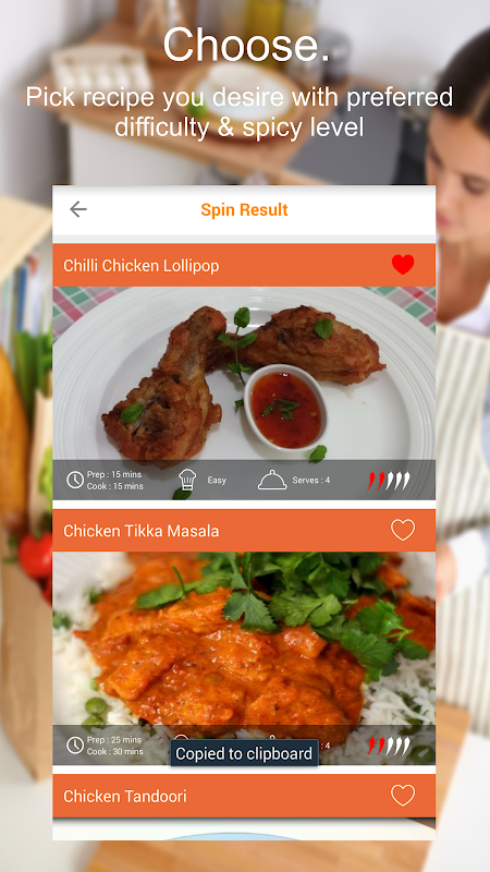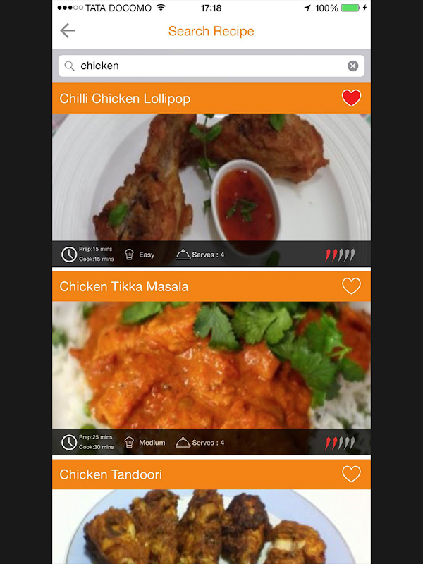 - Search Results: Pick the recipe you desire after considering time to cook, difficulty and spicy level.