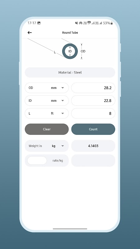 * Standard shapes for calculate weight as per your dimensions (Round bar, Round Tube, Square bar, Square tube, Rectangle bar & Rectangle tube.