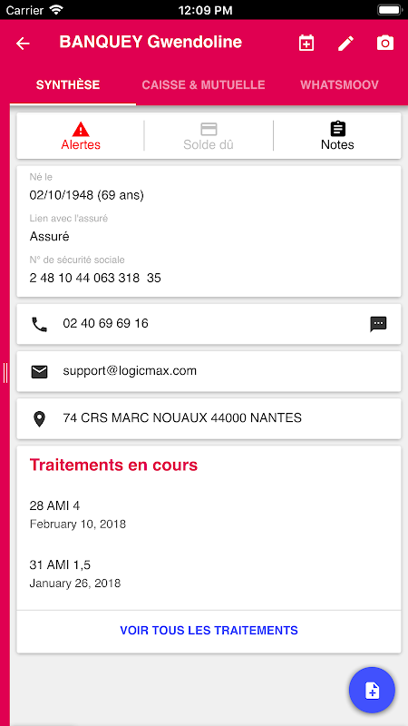 - Benefit from instant messaging thanks to Whatsmoov to facilitate your transmissions and note important information to know in the patient's file;