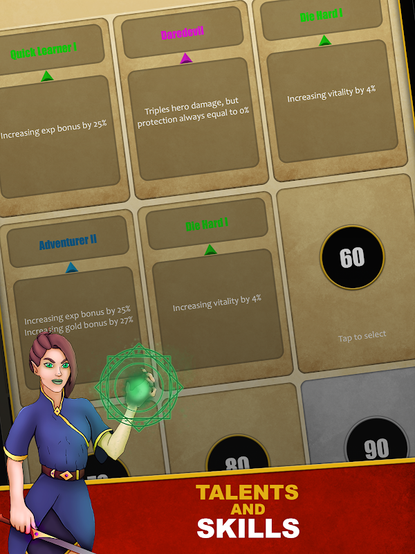 RPG Elements: Level up and improve your heroes, unlock new talents, and use various game system to improve them.
