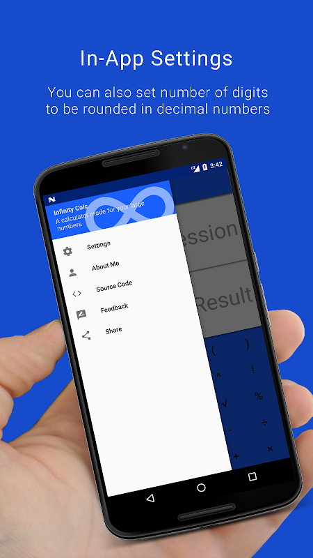 Infinity Calc provides simple functions for numbers that are larger than the capacity of a normal calculator.