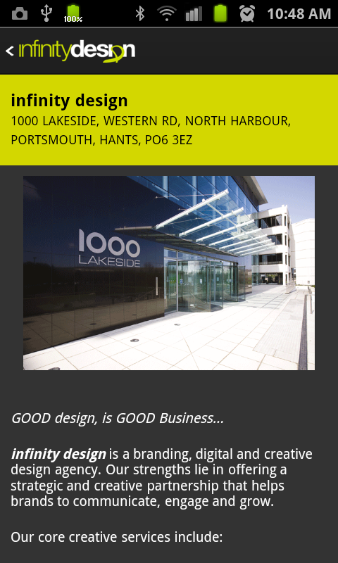 Whether you've been a customer for years or we have just been recommended by a friend, the infinity design app is a way for you to find out more about what we do, see examples of your work and get in touch...