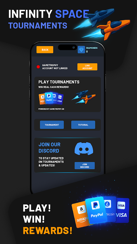 Welcome to Infinity Space, the ultimate play & earn rewards game where gaming meets real money rewards. Fly through space, dodge meteorites, unlock spaceships, and join tournaments to earn PayPal cash, crypto, and gift cards directly through the GameTrophy app.