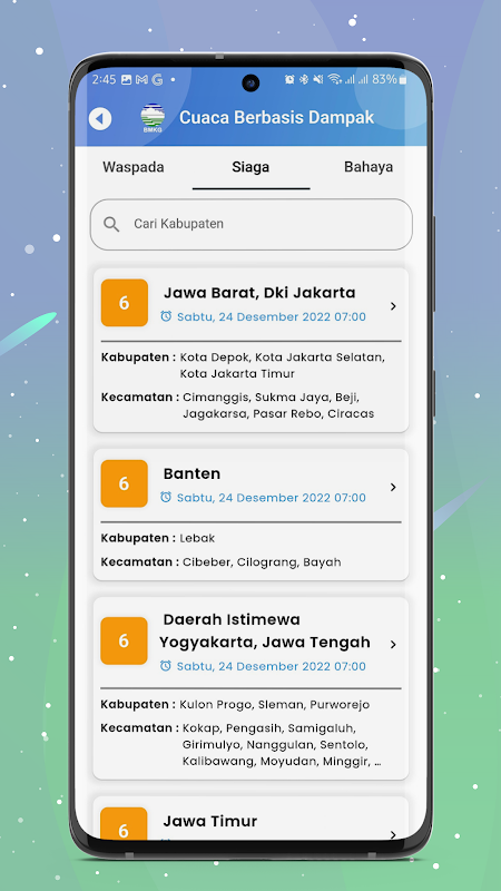 Provides early weather warning information in all Indonesian provinces