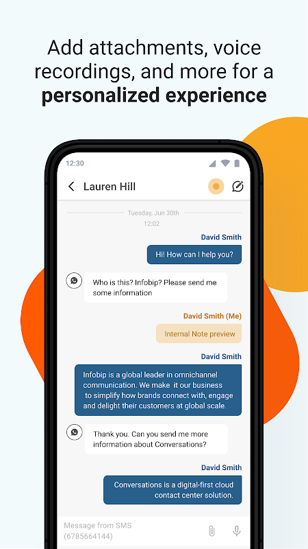 Conversations app provides your agents with all the features they need to deliver memorable customer experience across touchpoints, enabling them to engage with customers in real-time cross-channel communication directly from their smartphones.