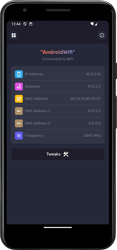IPv4, IPv6, Public IP, DNS address, Local Gateway address, Wifi Security Types and much more in one app.