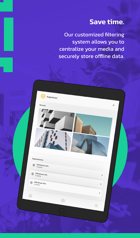 Our application helps you stay organized by simplifying your real-time operations. Manage your project visuals effortlessly with Infosnap : photos, videos, filters, dates, locations, categories - everything is centralized, secure, well-structured, and optimized for seamless exchange and sharing.