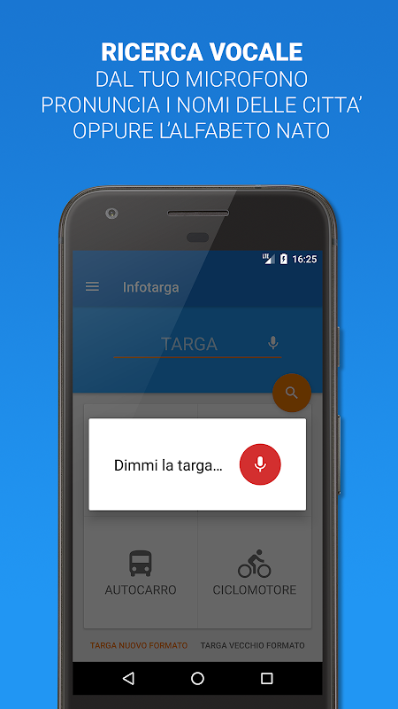 ★Vocal Search allows you to carry out the search without using the keyboard, simply by vocally dictating the license plate. It is possible to enter data through the use of spelling by pronouncing the individual letters or associating them, for example, with city names.
