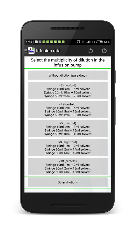 The program allows to calculate the infusion rate of drugs.