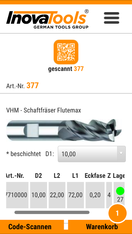 The InovaTools QR-Code Reader helps bridge the gap between the tools catalogue and the online tools offered in the INOSHOP, INOCUT cutting data and INOTECH data sheets.
