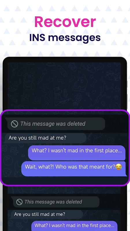 With INS Recovery - Message Backup, you'll never lose an important Instagram message again! This powerful app lets you recover deleted Instagram messages without needing a backup. By reading incoming notifications, it saves messages as they arrive, so you can access them even after they’ve been deleted by the sender.