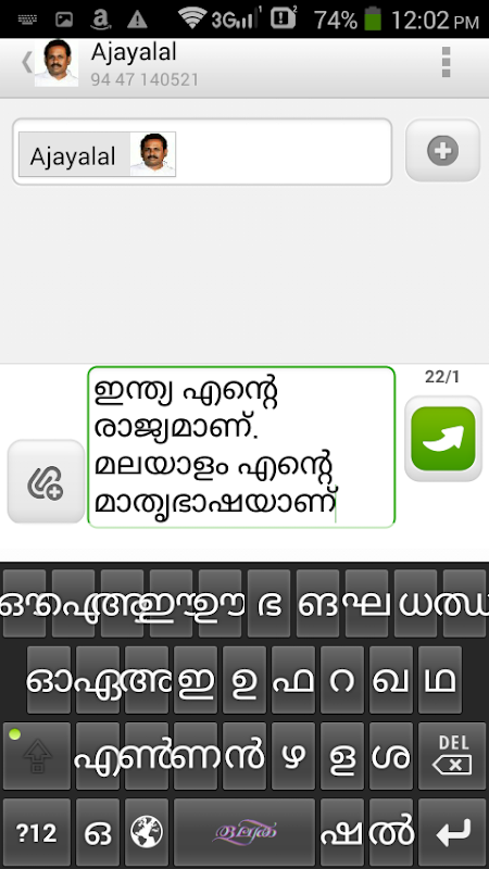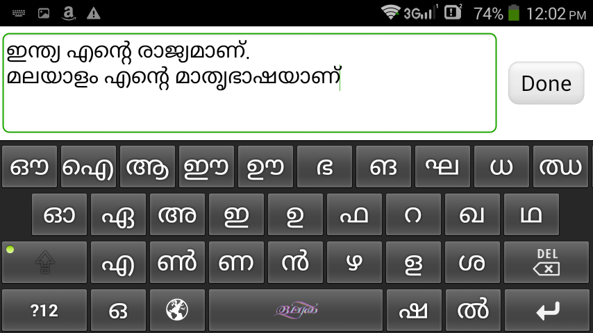 Government of Kerala approved Keyboard layout for Malayalam text entry.