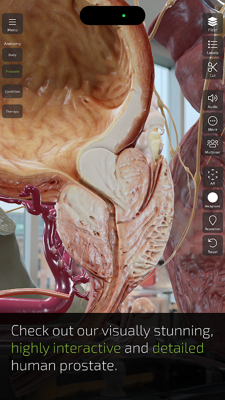 With the help of Augmented Reality, INSIGHT PROSTATE allows users to easily scan their physical environment and place the three-dimensional prostate. Our virtual assistant ANI guides you through the different states of the prostate.