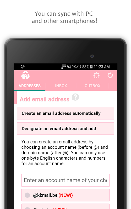 You can use the same address on PC, Android, KindleFire, and iPhone/iPod/iPad, and sync messages.