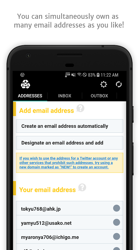 The app enables you to create disposable email addresses.