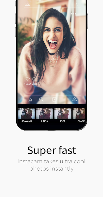 You can use instant camera as a personal selfie cam, live photo taker, beauty camera, selfie editor etc.