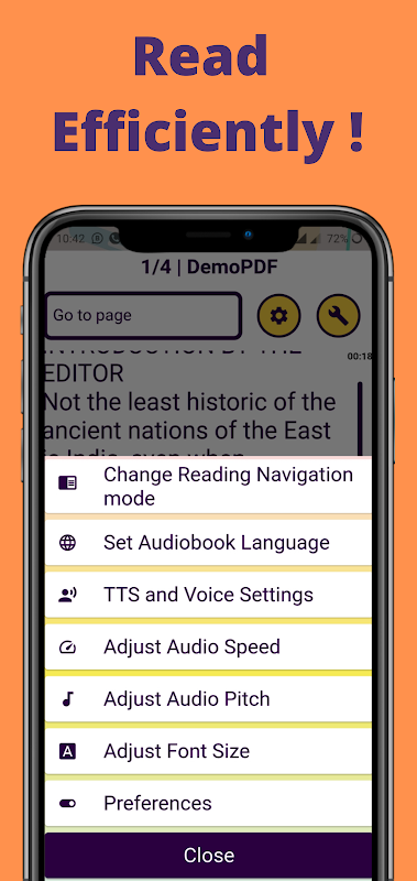 Not only that you can translate, edit, copy, download, share the audiobooks. You can also take notes while reading, bookmark, search for text, track your reading time, skip unwanted text, set reading mode, adjust audio speed, pitch, and change audio voice.