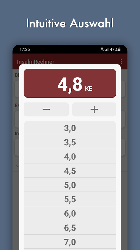 Calculate the right amount of insulin from your blood sugar easily with the diabetes app.