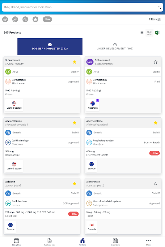 Search through our portfolio using filters as stability clime zone, jurisdiction, therapeutic area and more.