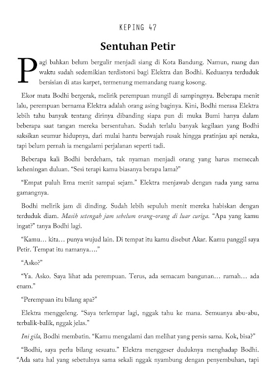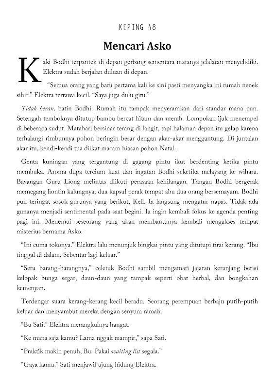 Meanwhile, in Bandung, Elektra, who had been afraid to help Bodhi enter Asko, finally changed her mind. Elektra takes Bodhi to meet her mentor, Sati. Beyond expectations, Elektra actually fell ill. Bodhi feels guilty and promises never to ask for their help again.