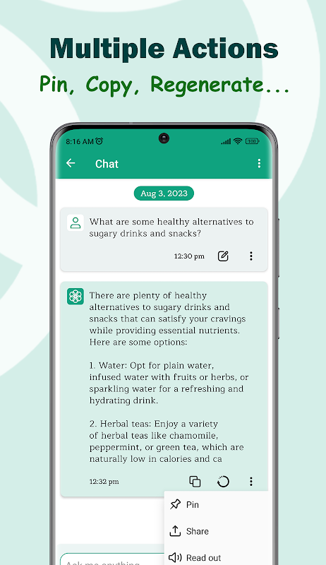 Audio Response: Listen to the AI's responses as they are read out loud to you, offering an immersive and engaging way to interact with the app.