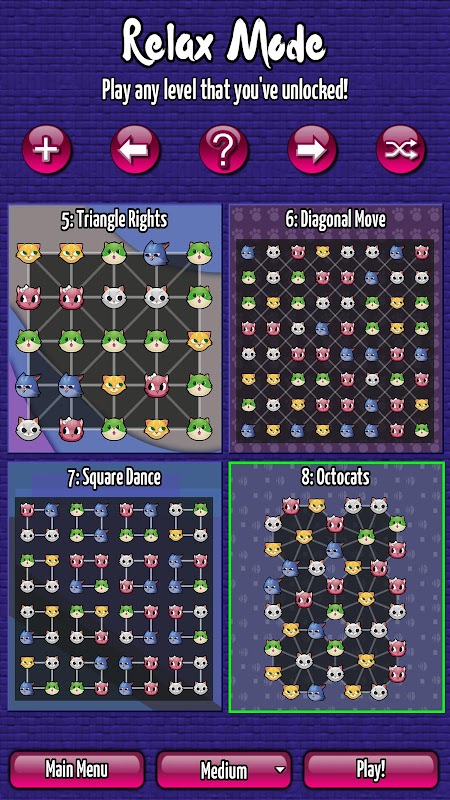 In each level you will be doing something different - matching and moving the cats in different ways in order to light up the board before you run out of moves. Match groups of 2 cats, 3 cats, 4 cats. Match them in lines, in triangles, on ramps, in a wheel. Swap them, rotate them, jump them, tap them. Each level asks you to envision a new world with new possibilities!