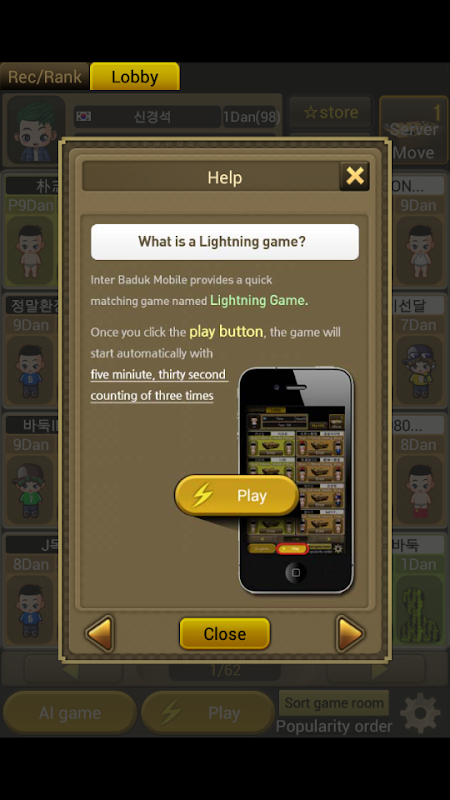 1. Playing game – All game starts with the unhandicapped game with the fast matching system.