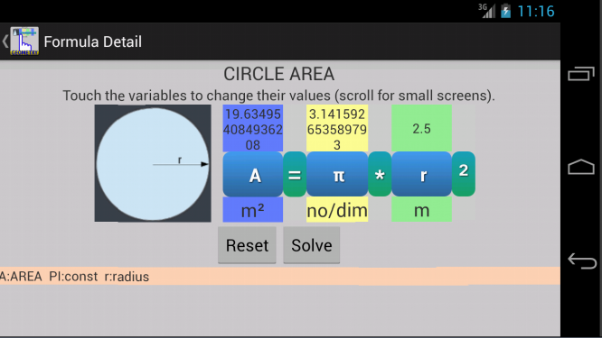 This app is ideal for students and graduates, you will find a variety of useful geometry formulas and you can enter a value by touch, the interactive feature make it easy to avoid typing or human errors.