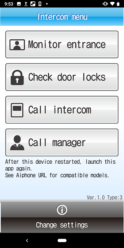 ・The app may undergo forced termination in the event it does not connect with the intercom for a long period.