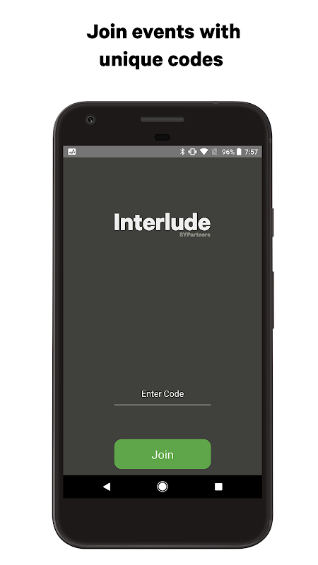 Interlude, by SYPartners, is an application that allows participants to receive content throughout an event. By entering a participant ID into the application, users will be joined to a session that will allow them to read, interact, and respond.