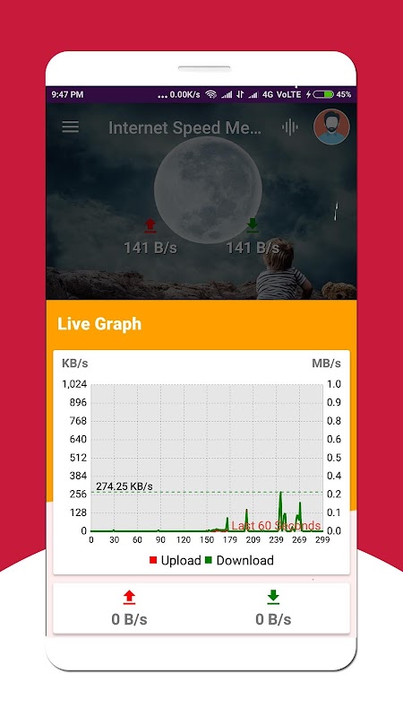Internet Speed Meter helps you easily track your internet speed and data usage.