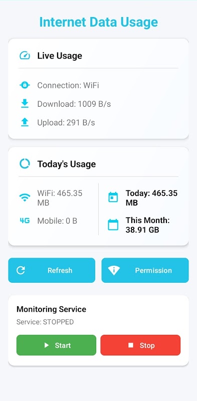 Thanks to foreground service support, the app continues tracking usage even when closed.