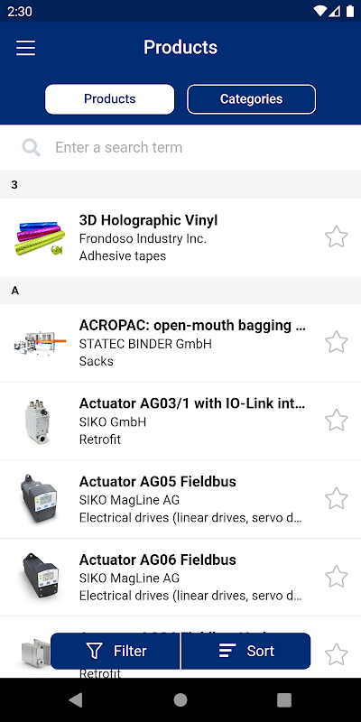 Mark specific exhibitors and products as favorites and build your own personal list of things to remember, making the interpack app into your digital companion as you make your way around the fair. Sync your favorites also with your saved portal settings. All needed information will be transferred from your desktop pc to your Smartphone.