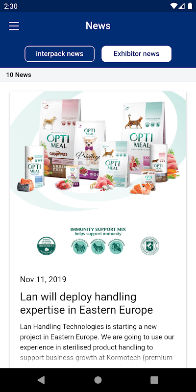 The interpack app helps you plan your visit to the fair, providing comprehensive information on the Packaging machines and appliances, Packaging materials, packaging means and packaging aids at the world No. 1 event in Düsseldorf. The perfect Smartphone integration thanks to offline search, Maps connection and an interactive map of the exhibition centre allow you to prepare your visit to the fair perfectly.