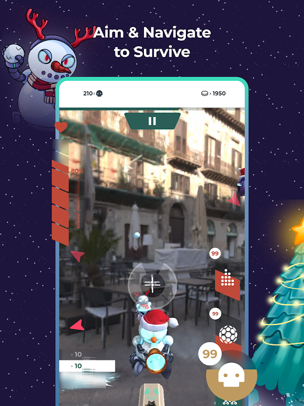 Embark on immersive AR battles against robot armies using a variety of weapons: a pulse pistol, grenade launcher, and beam gun. Your goal is to repel these invaders and ensure the safe delivery of gifts by Santa Claus. Each robot you defeat not only propels you up the global leaderboard but also contributes to the "Christmas Defense" mission worldwide. The more points accumulated globally, the higher the chances of a triumphant holiday season.