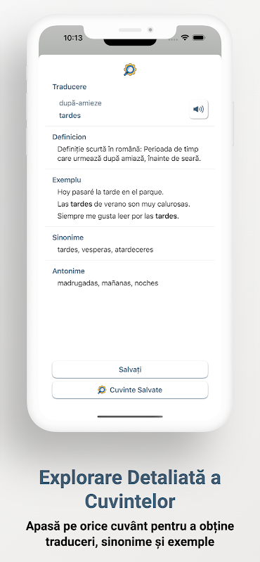 Our app is specially designed for Romanian speakers, providing translations, explanations and examples in Romanian to help you easily understand Spanish concepts. It creates the difference between the two languages, ensuring a seamless learning experience.