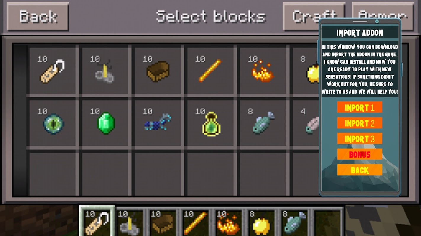 This addon will add to your world a huge amount of interesting and useful sorting wang for your MCPEl! This addon will make your game much nicer and more convenient!