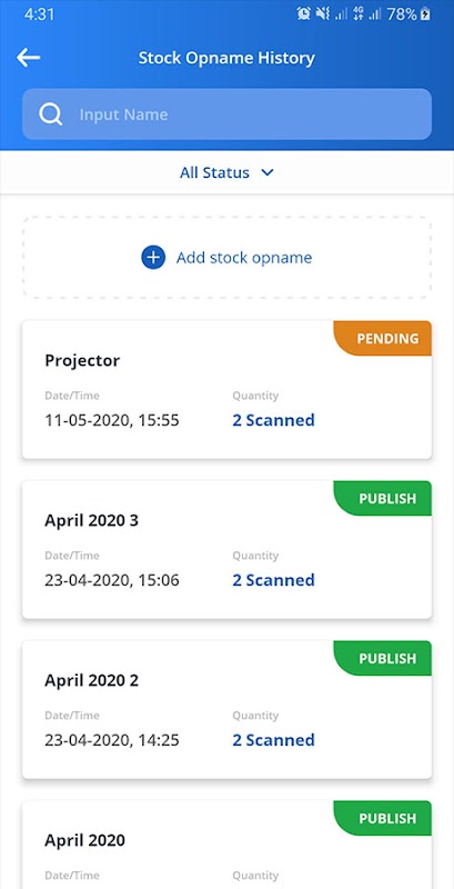 The app manage tracking moving in and out asset with existing barcode.