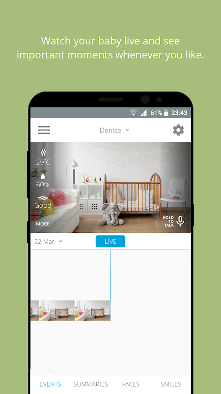 -Invidyo camera includes temperature, humidity and air quality sensors so that you can monitor your babies environment and make sure that everything is OK.