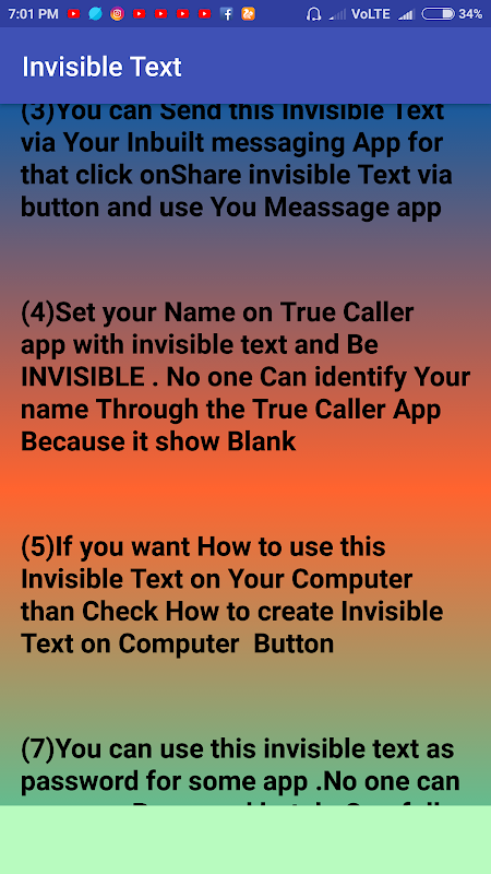 Invisible Text App can Send Invisible or Blank Message Through WhatsApp and you can use this Invisible Text As