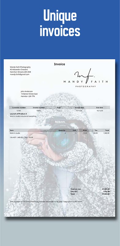 • Add your logo or signature to your invoice and quote