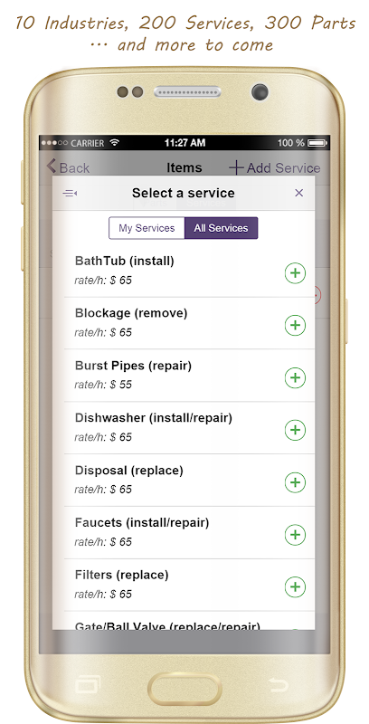 - .. we update this list constantly, so make sure you check the app for more industries. If your industry is not listed, you can always create your own list of commonly used Services and Parts inside the app.