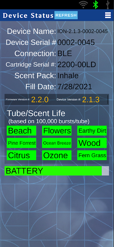 The ION Admin app lets OVR Technology's customers view the status of their ION scent device and cartridges, adjust and manually trigger the default scent intensity settings, as well as, update the device's firmware.