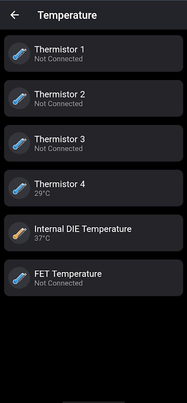 voltages, temperature, battery alerts and faults.
