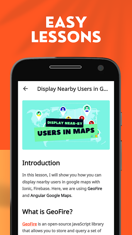 The app includes individual lessons and courses to learn Ionic and other kinds of stuff.